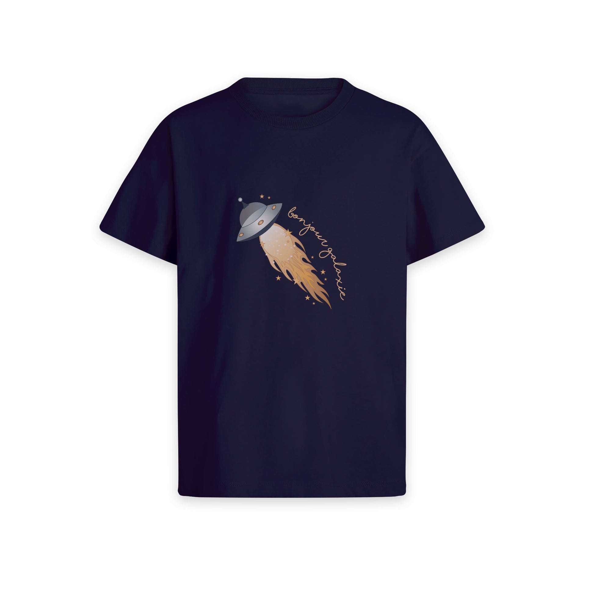 Smuk t-shirt til drenge i farven Navy natblå himmel med UFO og stjerneskær.