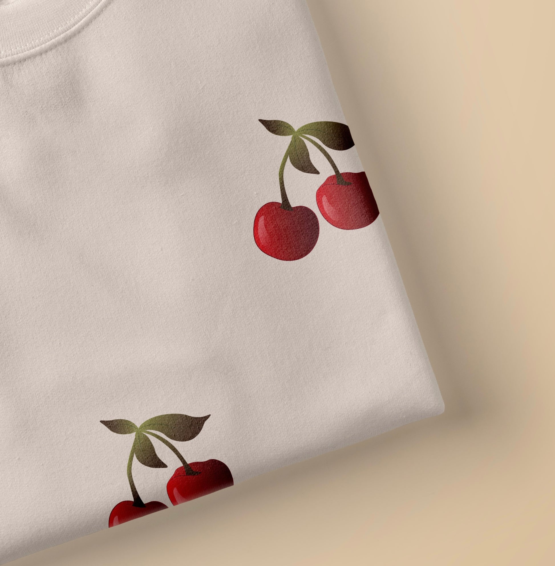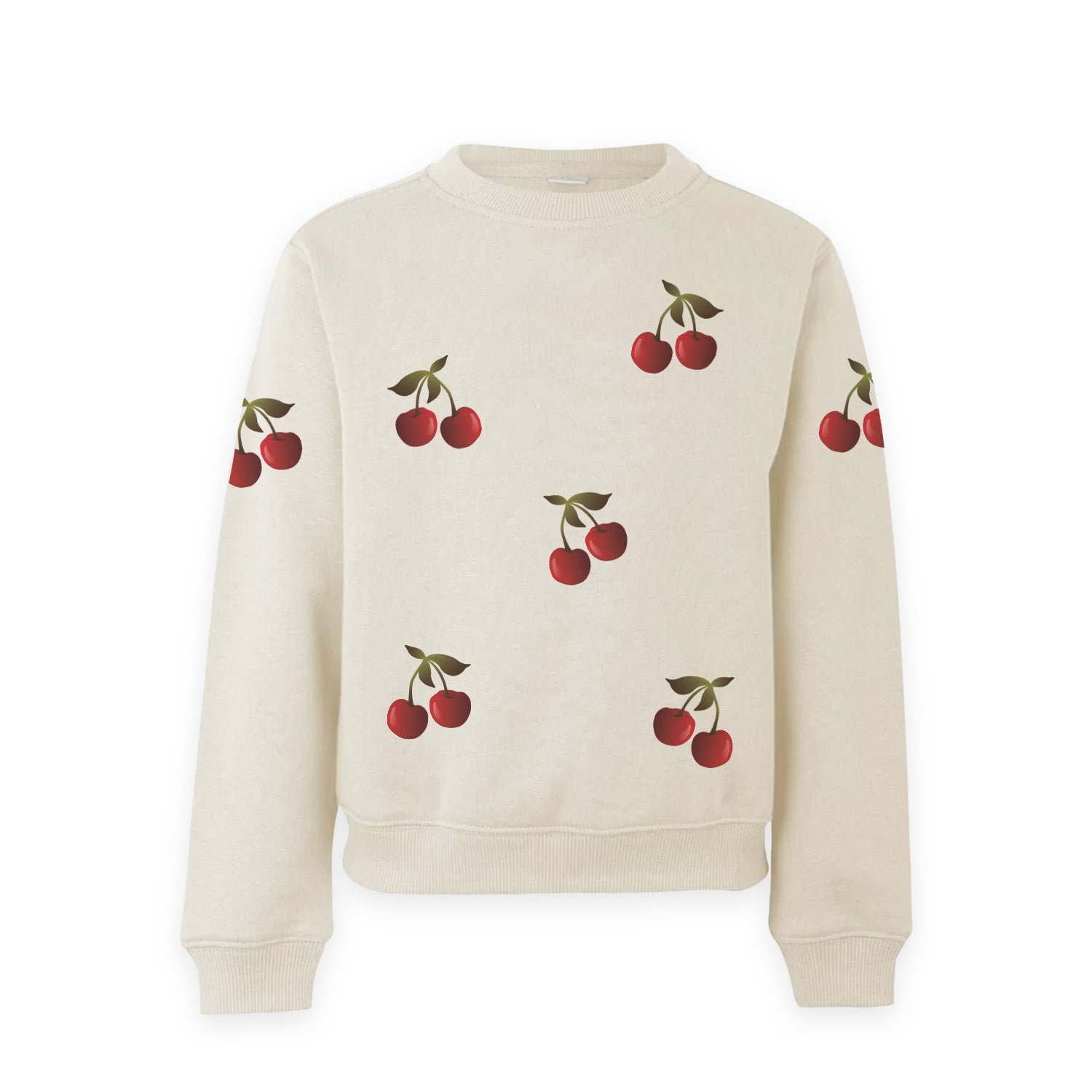Søde kirsebær motiver på fronten af vores bløde sweatshirt i farven ivory.