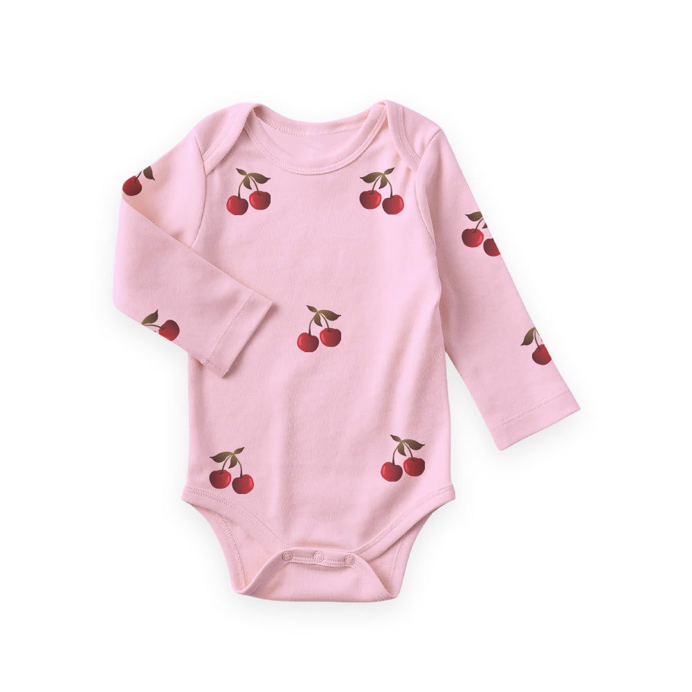Rosa kirsebær body fra nyfødt til størrelse 92. Blød kvalitet i 100% kæmmet bomuld.