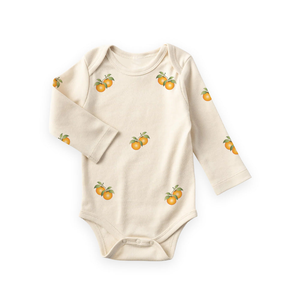 Unik babybody med appelsinmotiv på 100% økologisk bomuld.