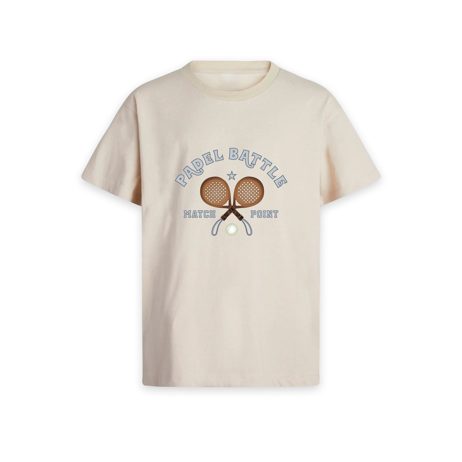 Padel Battle motiv på blød basic t-shirt til drenge.