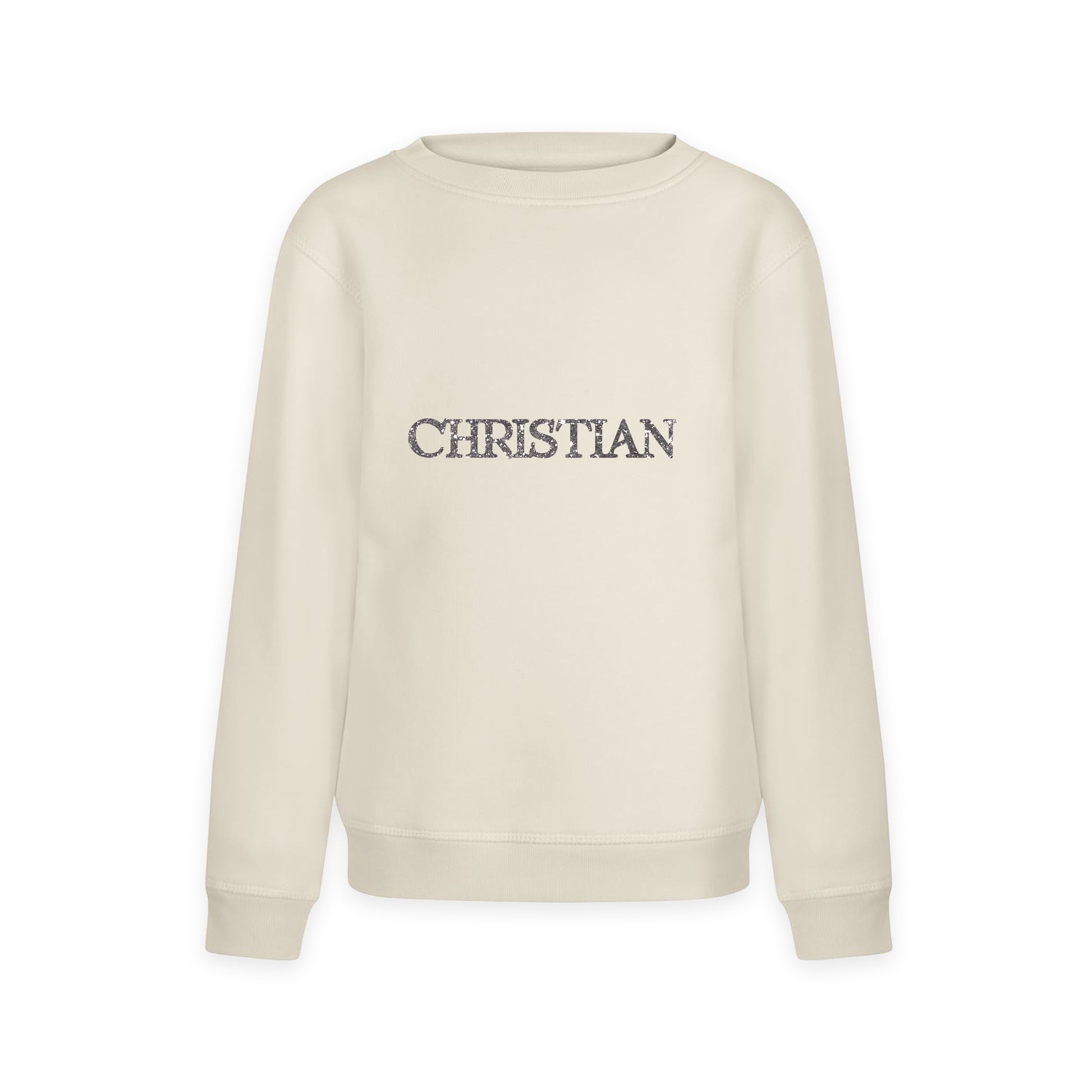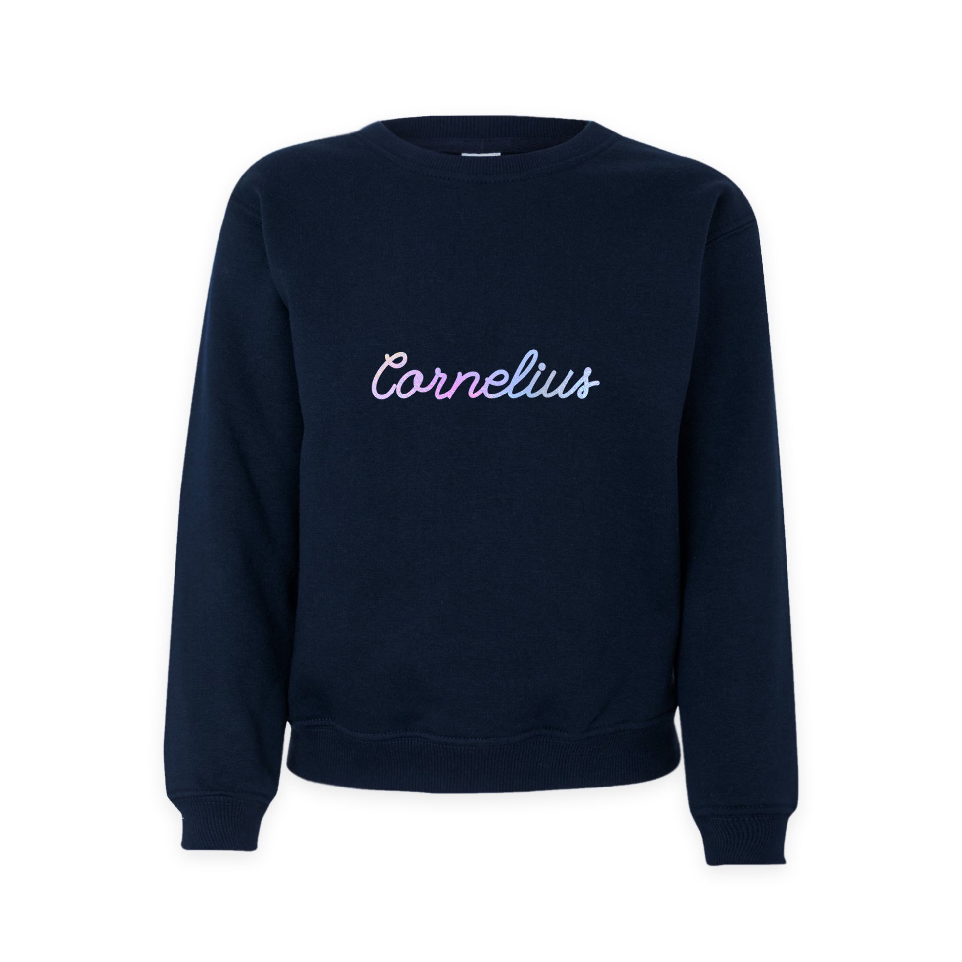 Fortryllende sweatshirt med eget navn. Navnet kan designes med 2 typer folie (stjerneskær eller regnbue effekt), som din baby uden tvivl vil elske. Produktionstiden vil være ca. 1 uge.